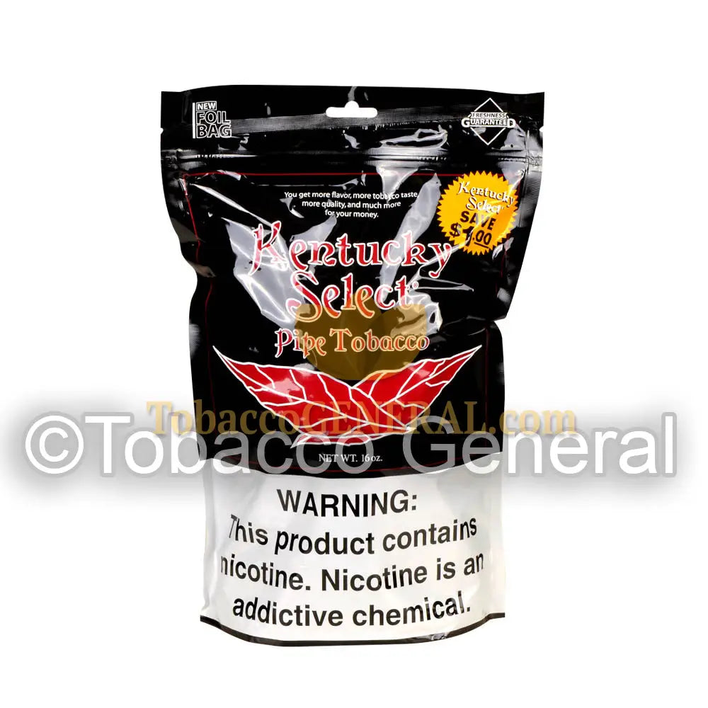 Bold, regular and full flavored, this is the most traditional tobacco that Kentucky Select makes. Featuring a medium cut with limited shake, this tobacco focuses on achieving its flavor from natural tobacco instead of relying on chemicals. Each bag is created using a unique processing method to bring out the all natural flavors of the tobaccos and deliver an uncompromised smoke.