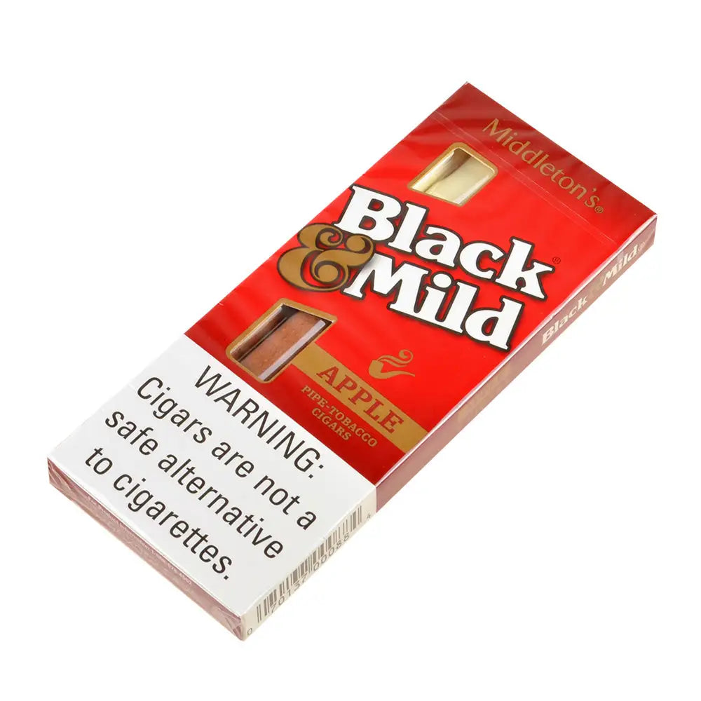 Black & Mild Apple Cigars are a popular Pennsylvania made plastic tip cigars brand. They are created with Middleton's pipe tobacco for a smooth, mild smoke. Black and Mild Cigars are available in several flavors too like apple and cream. The experience is unique, worthy of anyone who already enjoys these cigars
