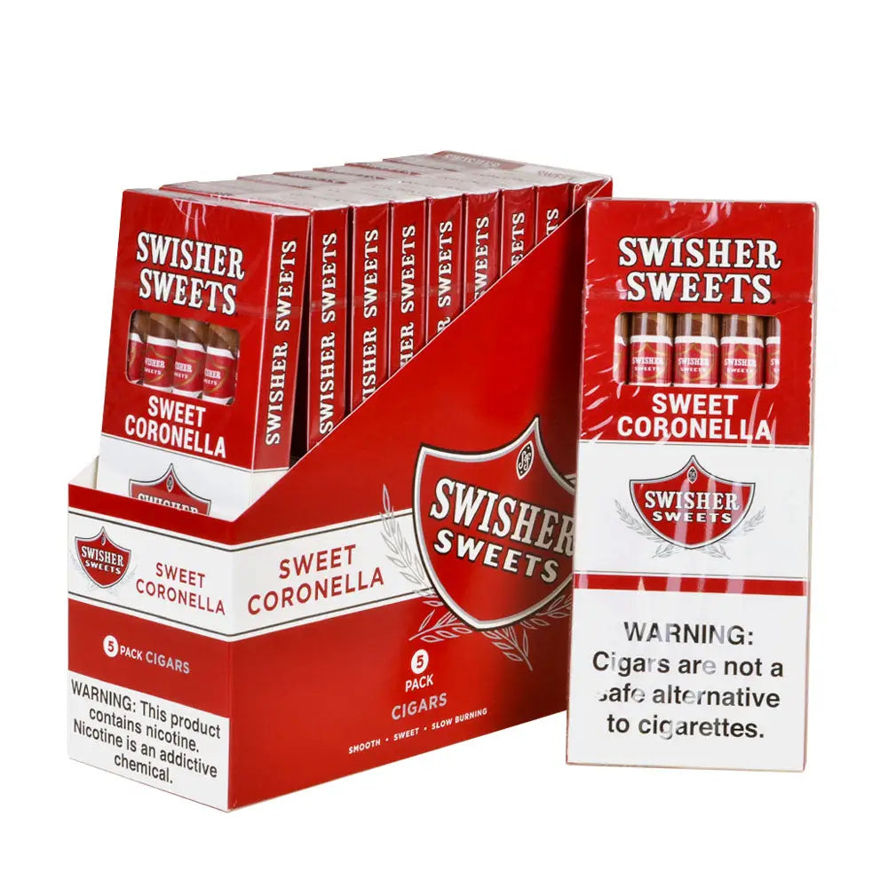 These Regular Flavored Coronella's are smooth and mellow. Swisher Sweets Cigarillo in Coronella is pleasing to both experienced aficionados and smokers who are just beginning to explore the intricacies of cigars. Sweet coronella flavoring pairs perfectly with the flavor profiles of the four-nation blend of tobaccos used in the construction of these cigarillos.