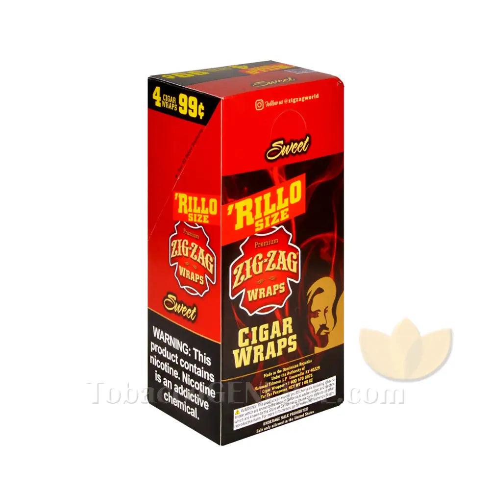 Zig Zag Rillo Size Wraps let you roll your own cigars with a variety of flavors to choose from. There are 4 Rillo sized cigar wraps per pack and 15 packs per display carton, for a total of 60 wraps. Zig Zag wraps come inside reseal able flavor saving package.