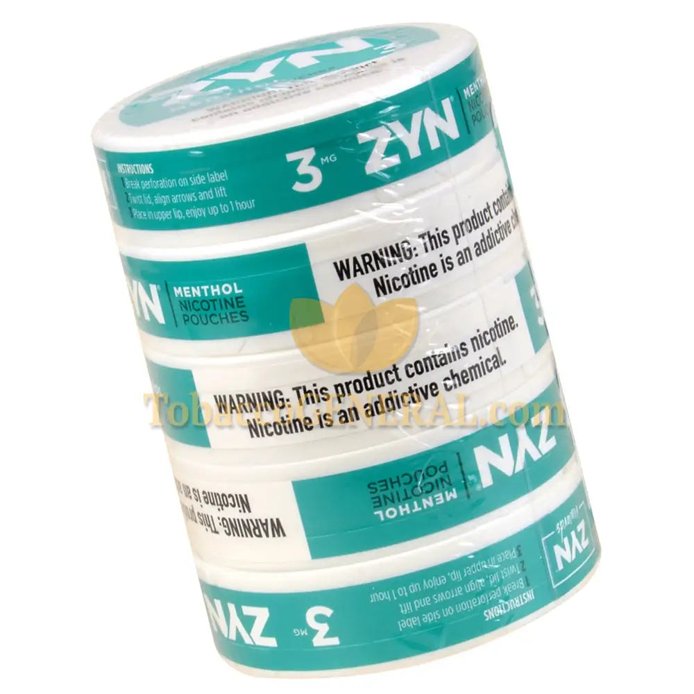 ZYN Nicotine Pouches 3mg 5 Cans of 15 Menthol